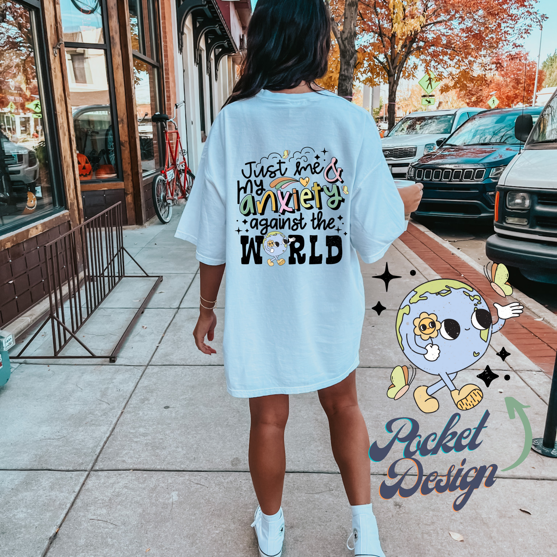 JUST ME AND MY ANXIETY *FRONT+BACK* - DTF TRANSFER