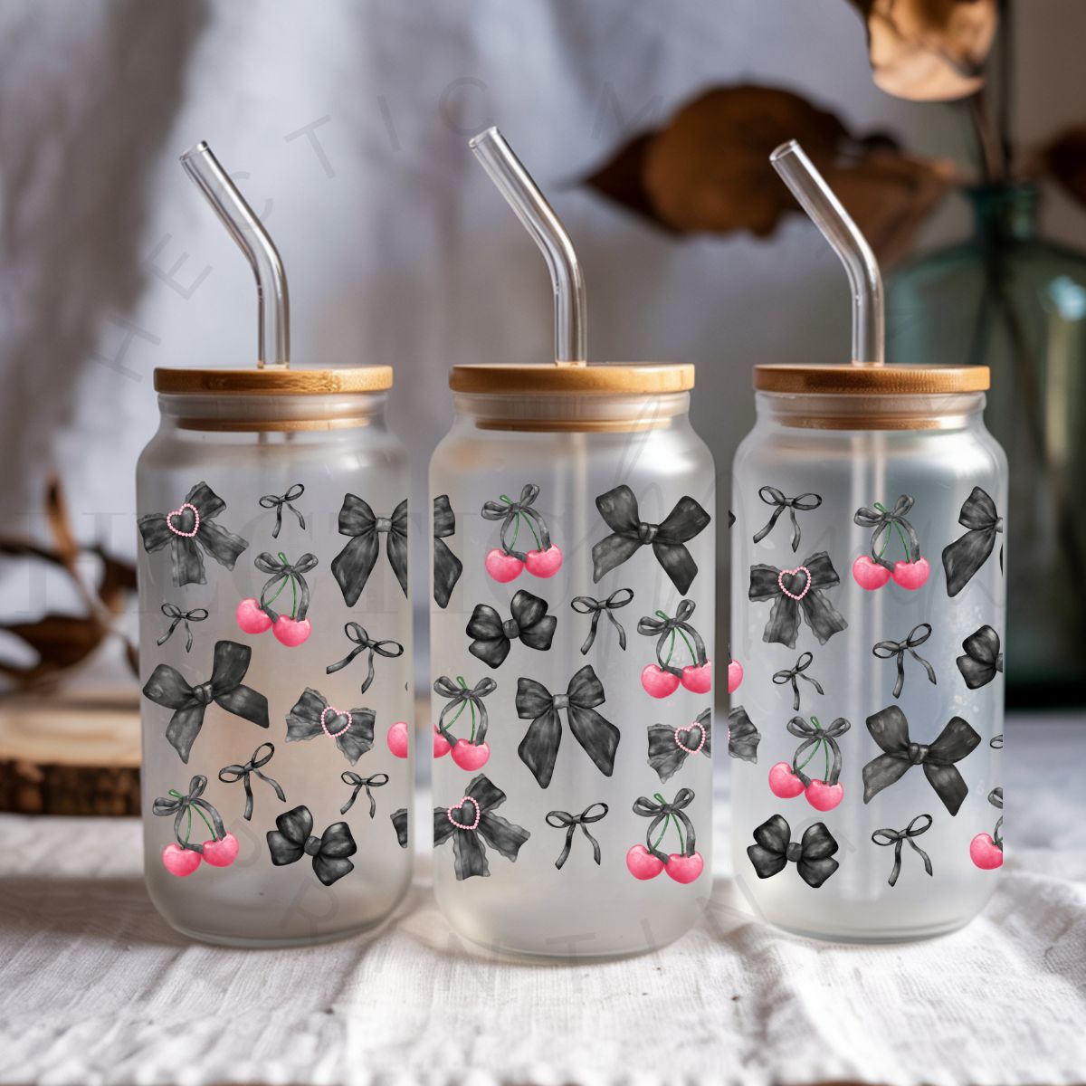 COQUETTE BLACK BOWS & CHERRIES - UV DTF