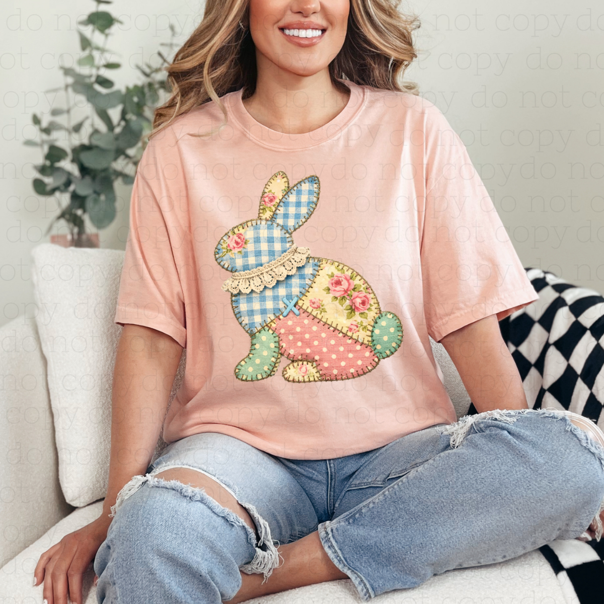 PATCHWORK EASTER BUNNY - FAUX YARN - DTF TRANSFER